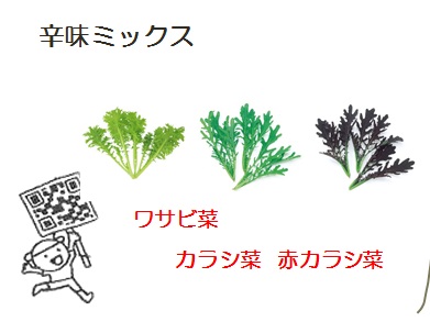 | 特徴 | : | ワサビ菜、赤からし菜、からし菜のミックスベビーリーフ |